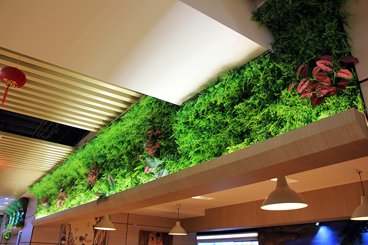 还有的人认为仿真植物品种用的越多做出的仿真植物墙就魅力十足、光芒四射,这是错误的观念!仿真植物墙讲究的是形态美观、色调合适、符合环境特点,能够把空间环境的格调瞬间提升,这才是我们想要的效果,比如一些商场内使用的仿真植物墙装饰多半是一两款仿真植物整齐排放,偶尔使用个别植物点缀,非常符合商场气息,也有利于提升顾客体验度。